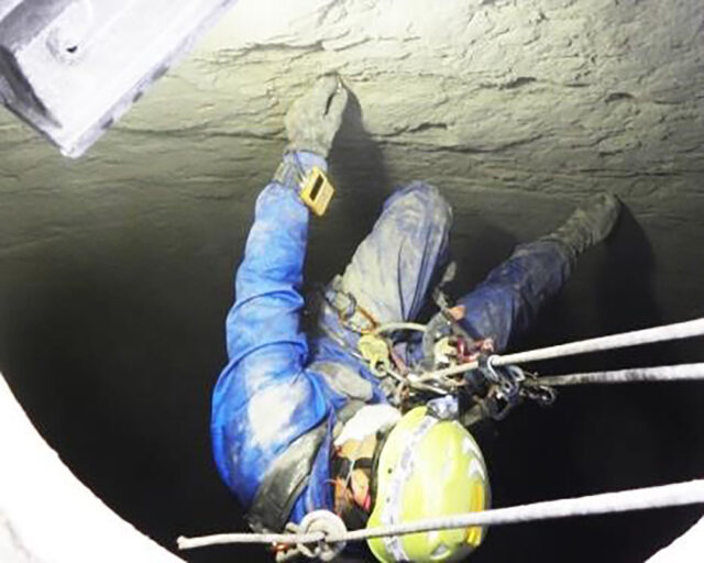 20. PROJECT in TITAN Company – Inspection of Preheater Chimney (from Inside).